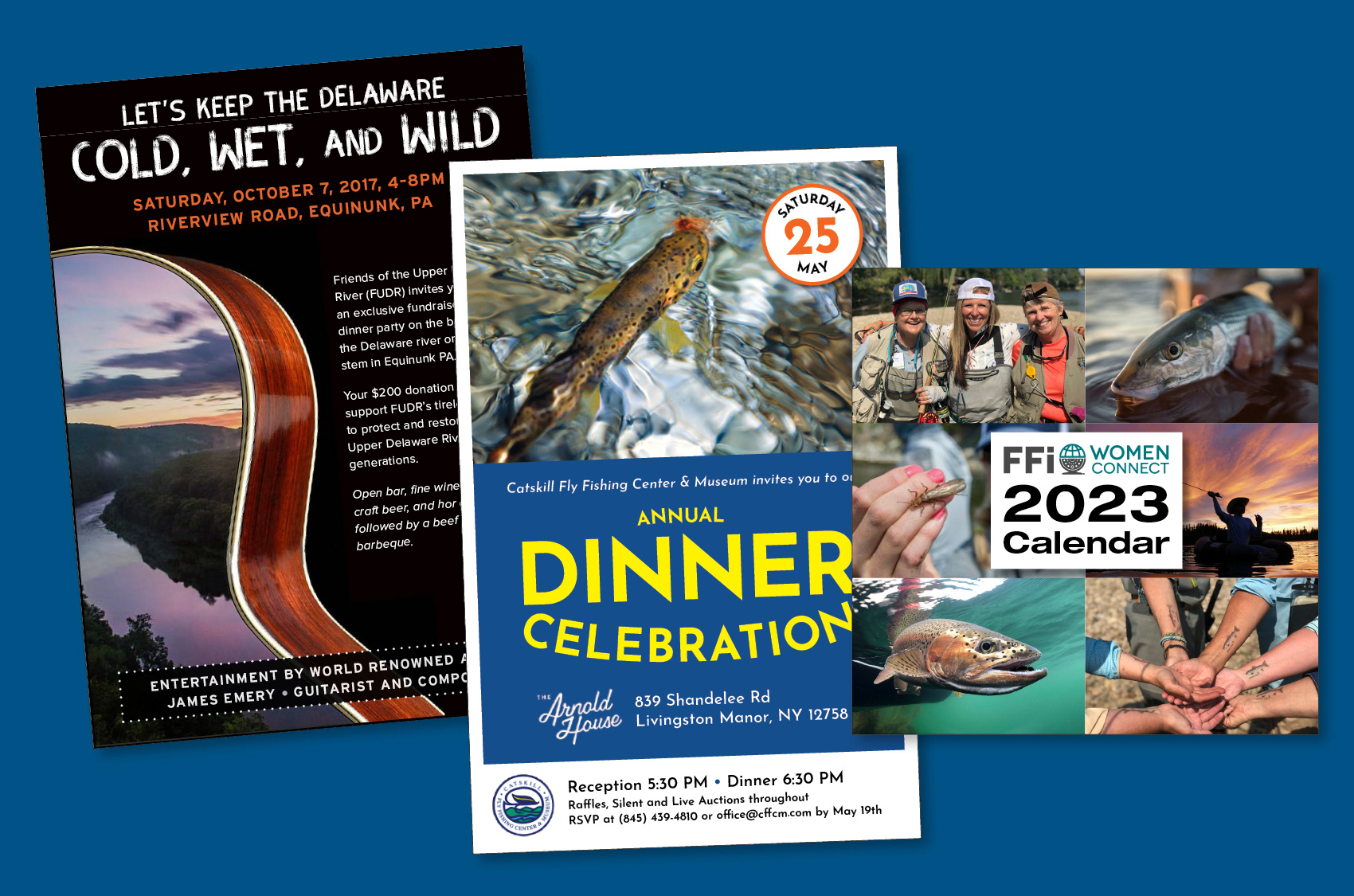 Pro bono design work for Fly Fishers International (FFI), Catskill Fly Fishing Center & Museum, Friends of the Upper Delaware River.